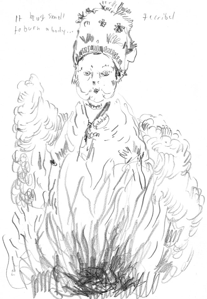 it must smell to burn a body